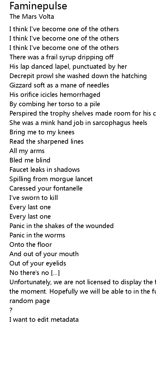 Unfortunately, we are not licensed to display the full lyrics for this song at the moment. Hopefully we will be able to in the future. Until then, how about a