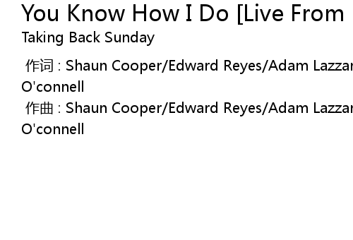 | [00:00.000] | zuo ci : Shaun Cooper Edward Reyes Adam Lazzara John Nolan Mark O' connell |