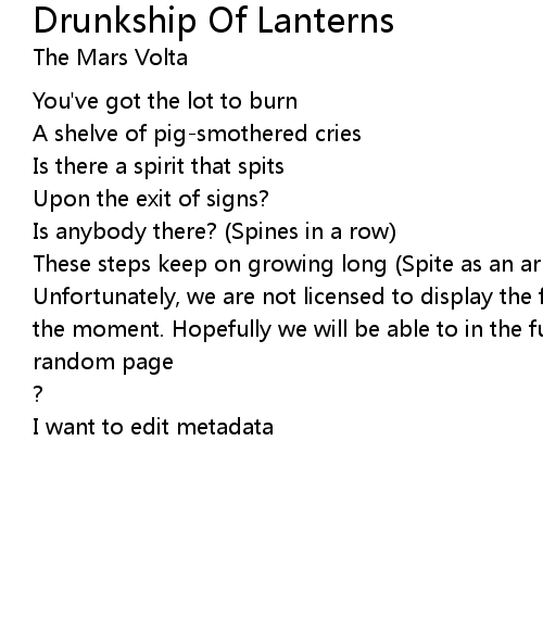 | Unfortunately, we are not licensed to display the full lyrics for this song at the moment. Hopefully we will be able to in the future. Until then, how about a | |