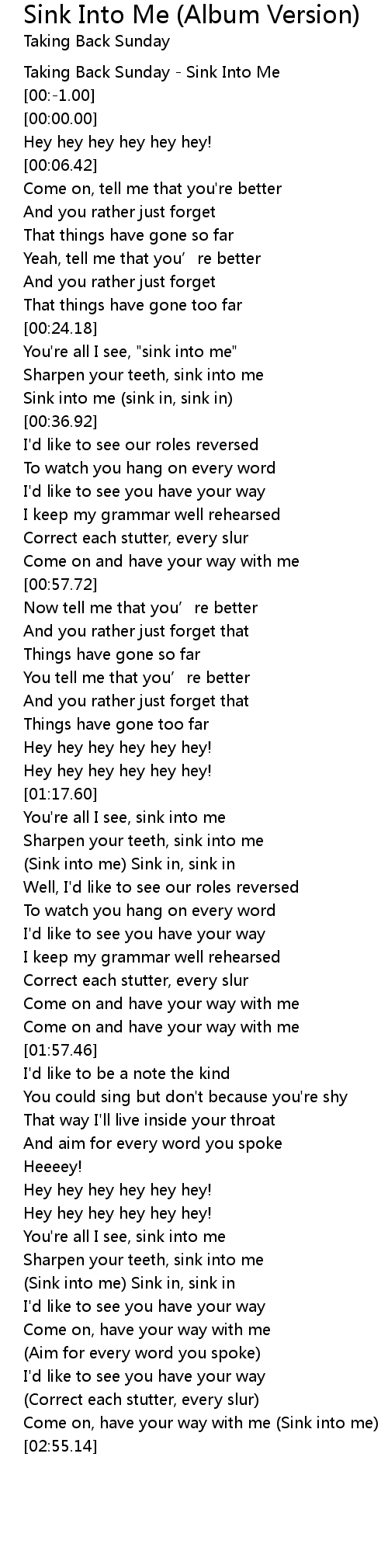 | [00:-2.00] | Taking Back Sunday Sink Into Me |