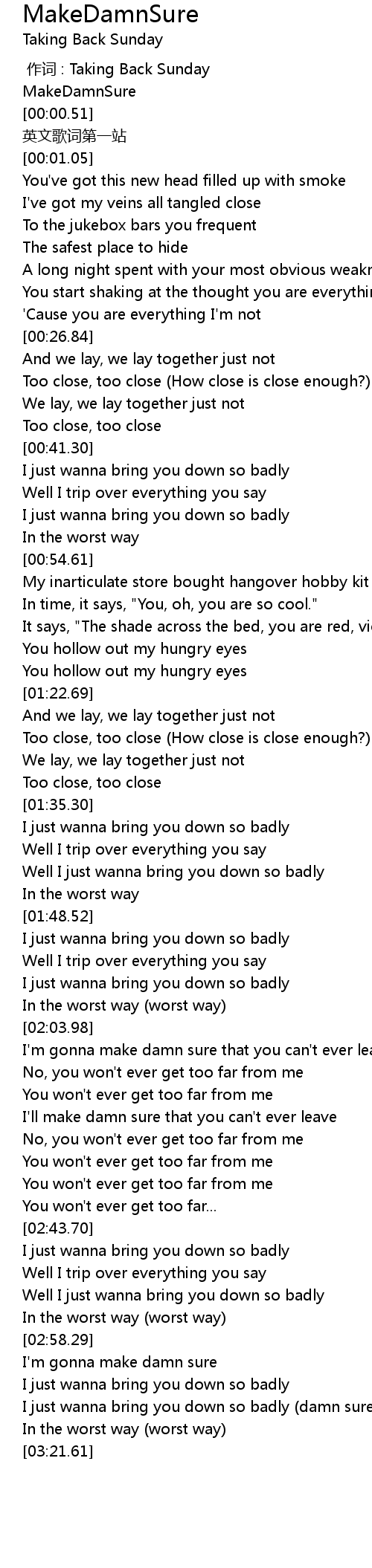 | [00:00.00] | zuò cí : Taking Back Sunday |