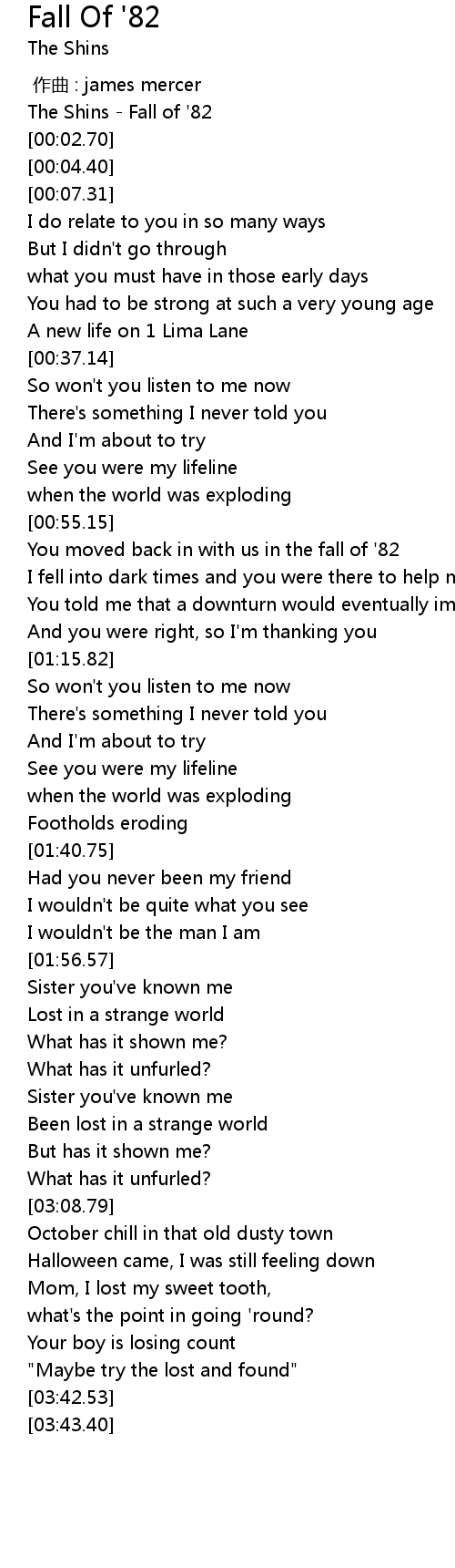 | [00:59.31] | You moved back in with us in the fall of '82 |