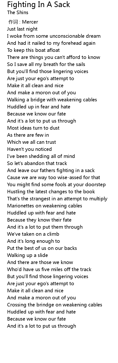 | [00:54.30] | And leave our fathers fighting in a sack |