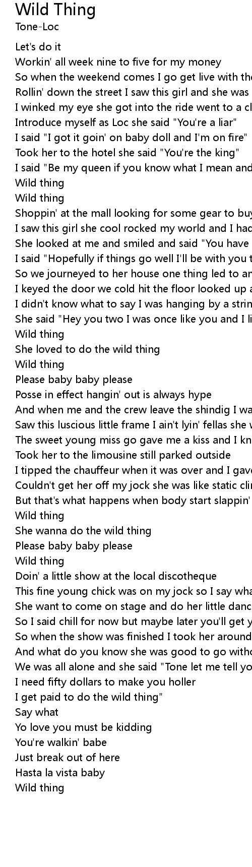 I said "Be my queen if you know what I mean and let us do the wild thing