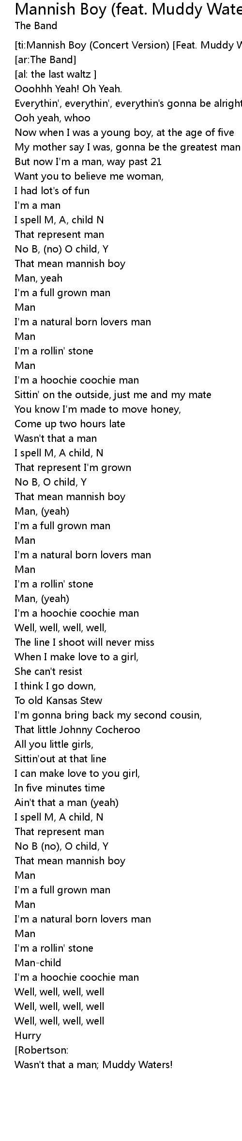 [ti:Mannish Boy (Concert Version) [Feat. Muddy Water]
