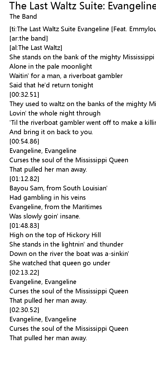 [ti:The Last Waltz Suite Evangeline [Feat. Emmylou Harris]