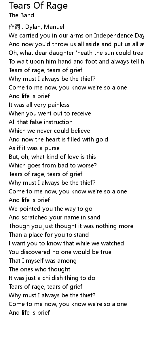 | Song | Tears Of Rage |