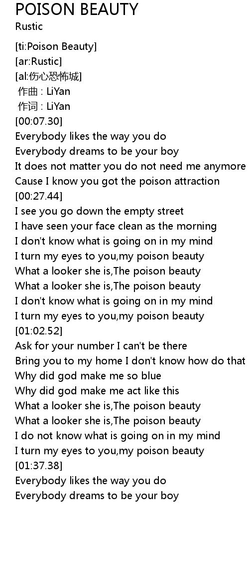 | [00:58.97] | I turn my eyes to you,my poison beauty |