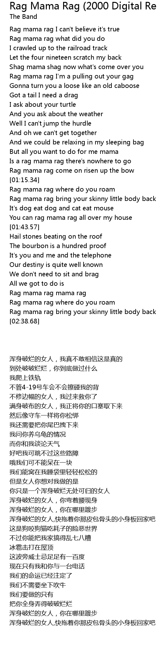 | [02:26.23] | Rag mama rag mama rag |