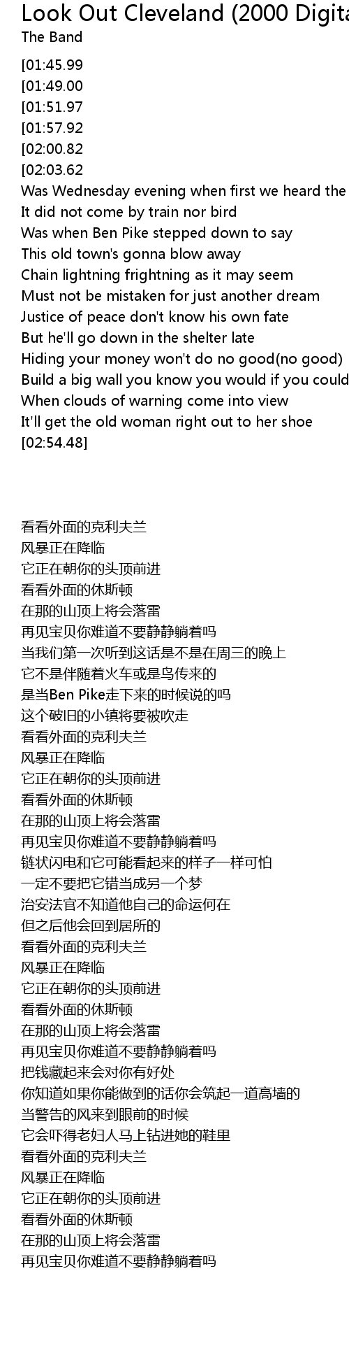 | [02:33.84][01:45.99][00:58.05][00:09.88] | Look out Cleveland |