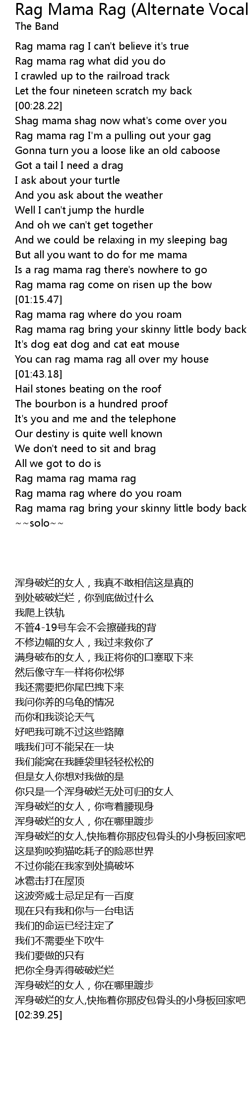 | [02:34.90] | Rag mama rag bring your skinny little body back home |