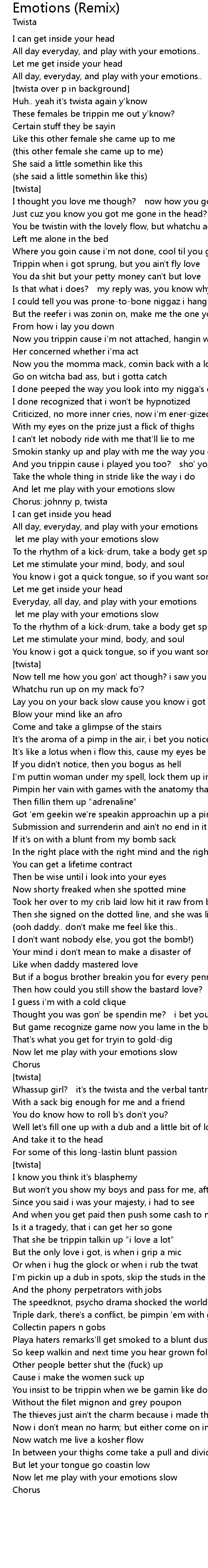 | You be twistin with the lovely flow, but whatchu actin all ugly fo'? | |