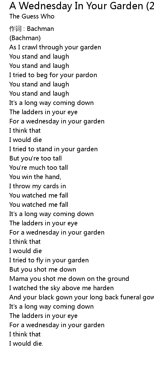 | Song | A Wednesday In Your Garden (2003 Remastered - Album Version) - 2003 Remastered - Album Version |