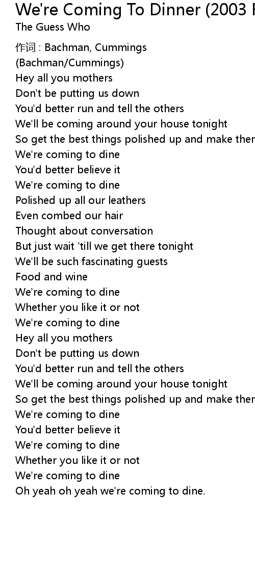 | Song | We're Coming To Dinner (2003 Remastered) - 2003 Remastered |