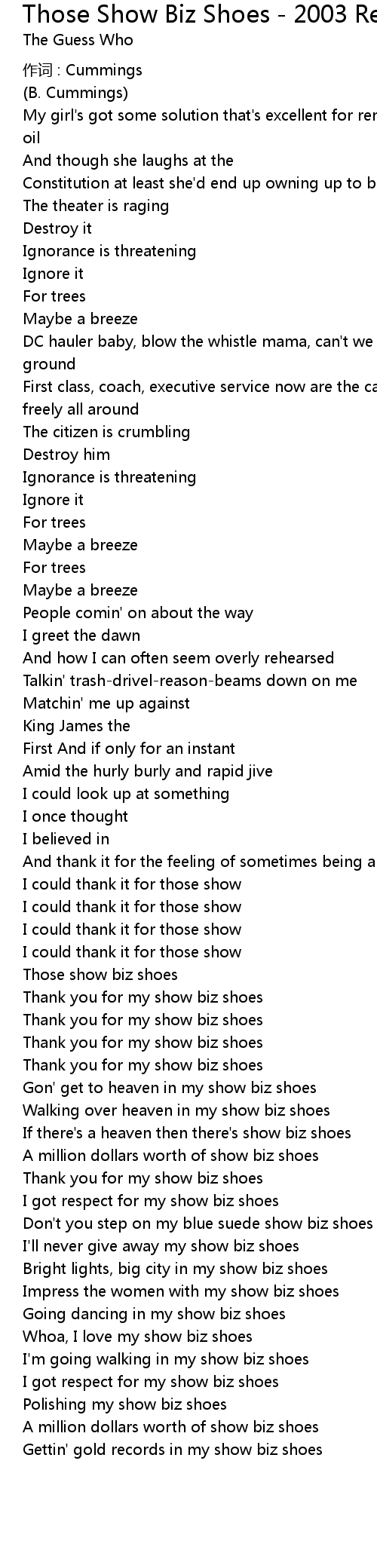 | If there' s a heaven then there' s show biz shoes | |