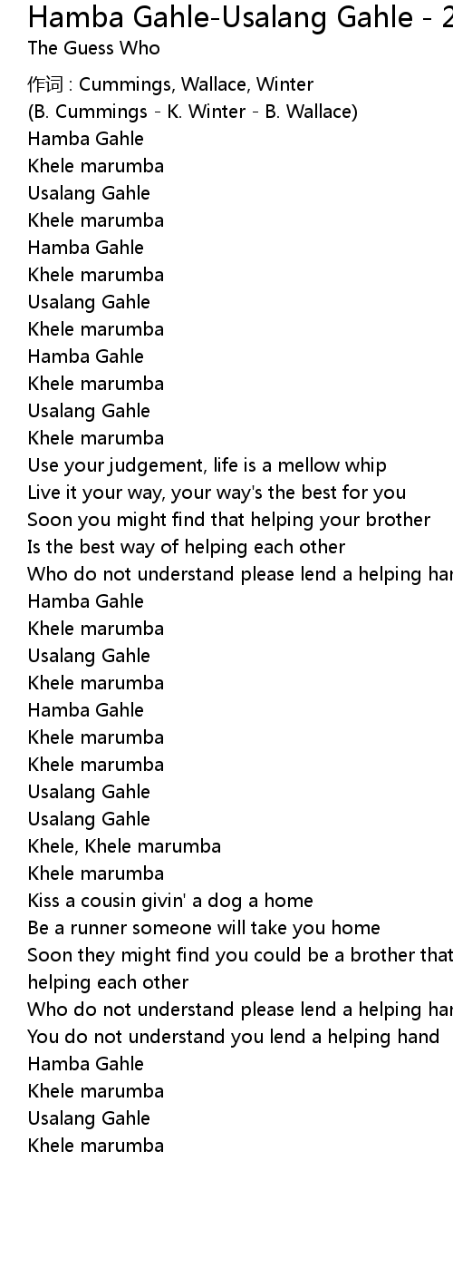 | Song | Hamba Gahle-Usalang Gahle - 2003 Remastered |