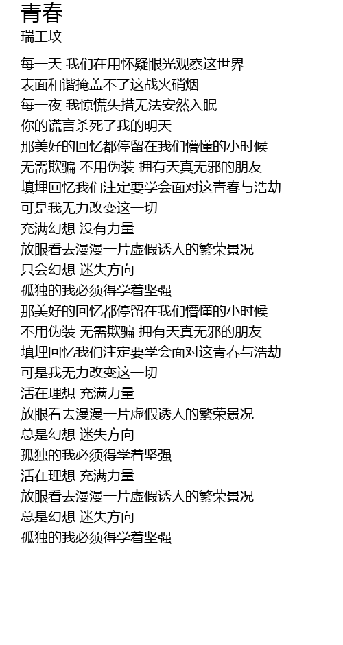 | [00:56.98] | 无需欺骗 不用伪装 拥有天真无邪的朋友 |