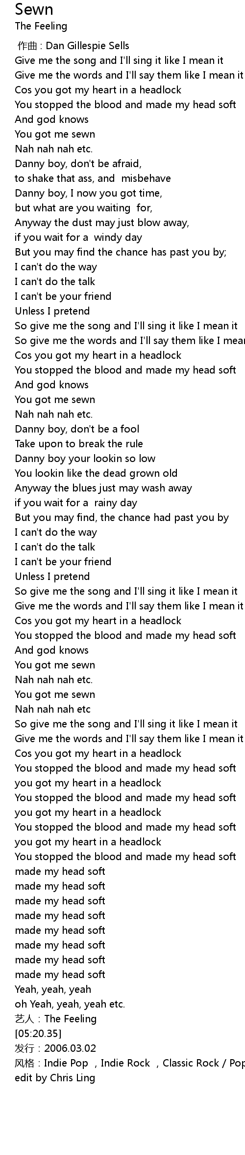 | [05:23.17] | feng ge: Indie Pop , Indie Rock , Classic Rock Pop |