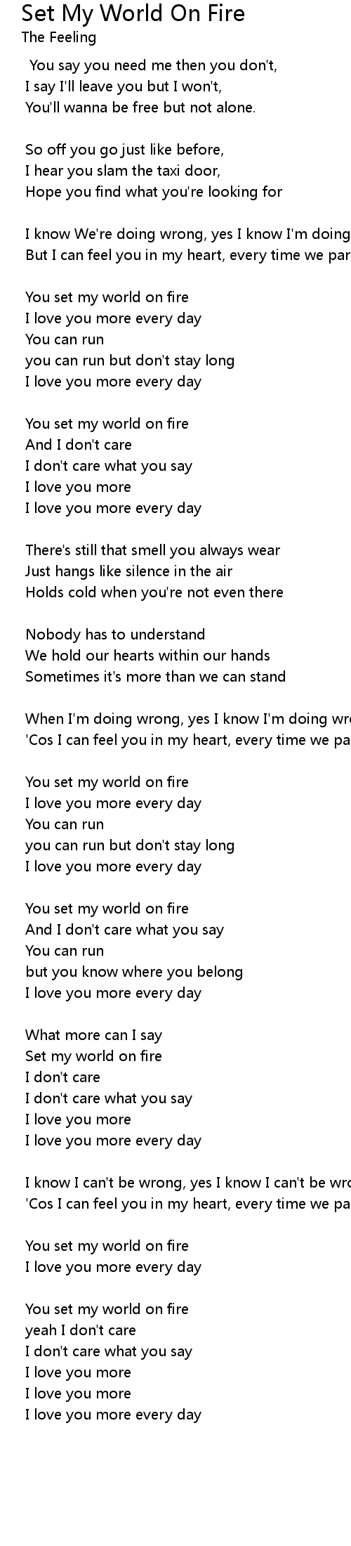 Set My World On Fire Lyrics