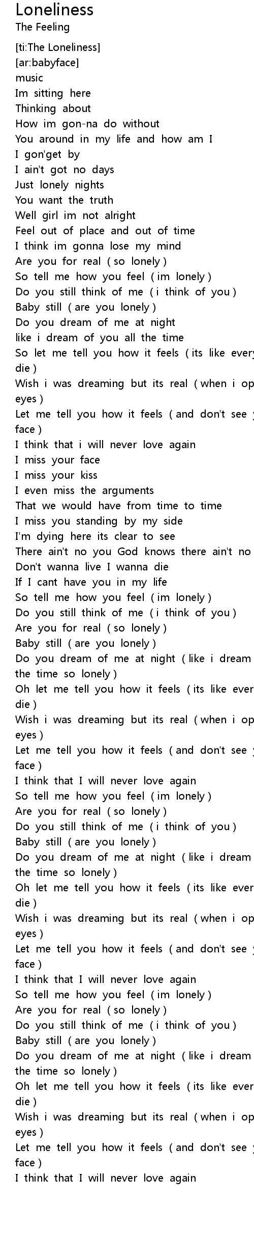 | [03:03.68] | So tell me how you feel (im lonely) |