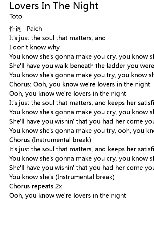 | Chorus: Ooh, you know we' re lovers in the night | |