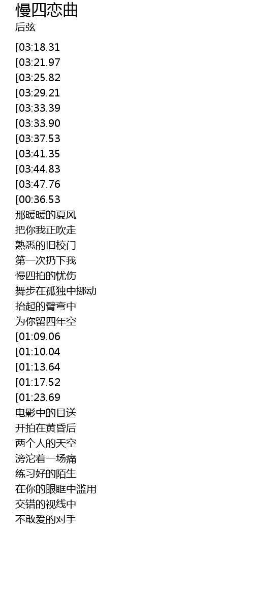| [03:53.17][03:21.97][01:28.80][00:06.88] | 心跳节奏 一曲珍重 |
