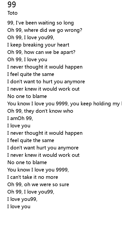 Oh 99, I love you99, |