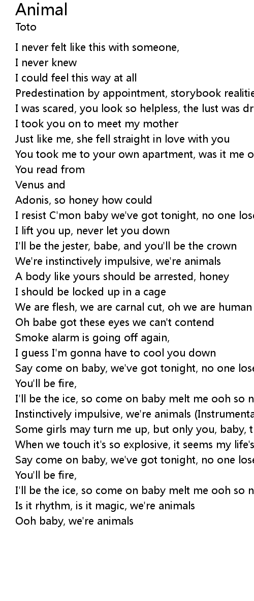 Ooh baby, we're animals |
