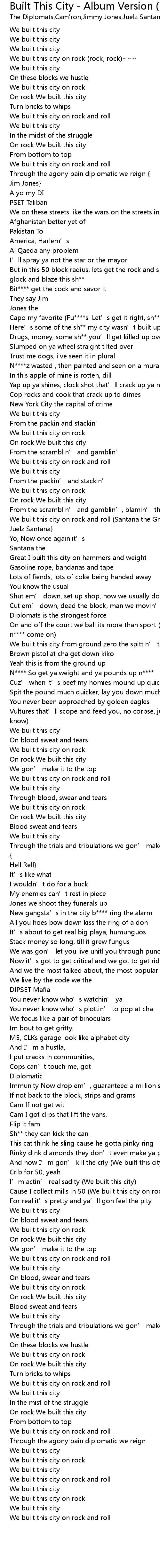 | Song | Built This City - Album Version (Explicit) |