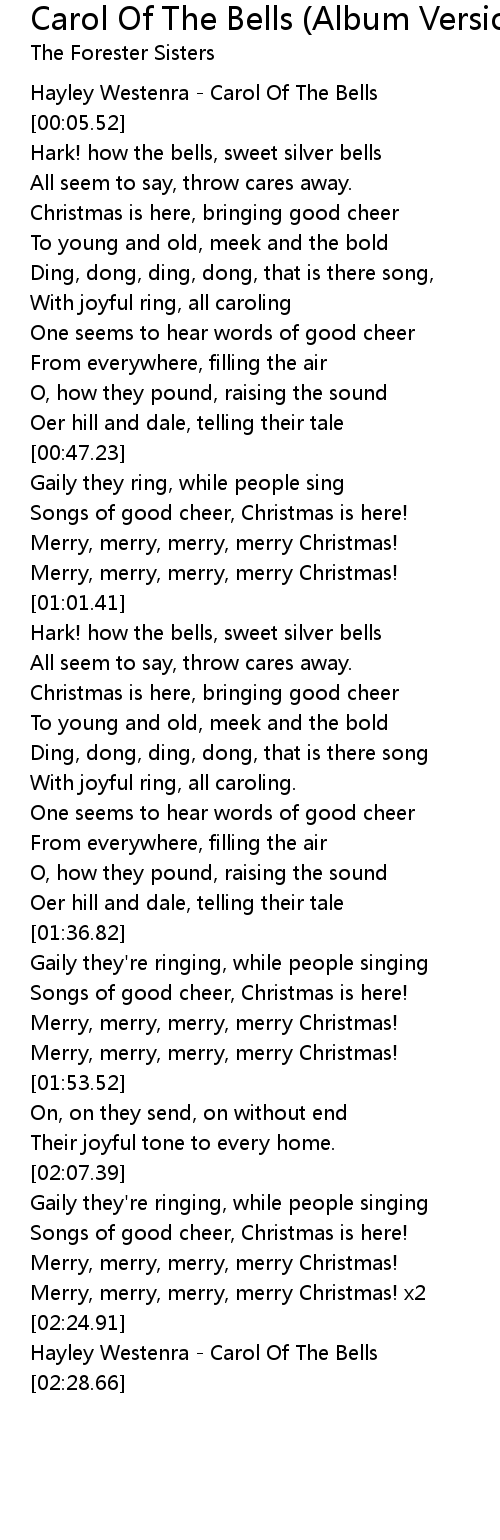 [00:03.52] Hayley Westenra - Carol Of The Bells
