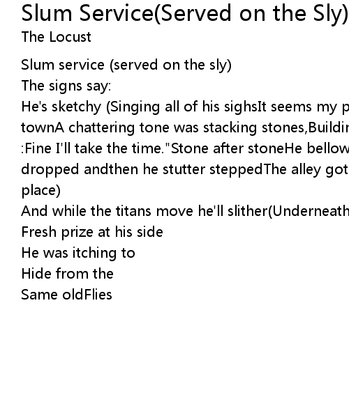 | Song | Slum Service(Served on the Sly) |