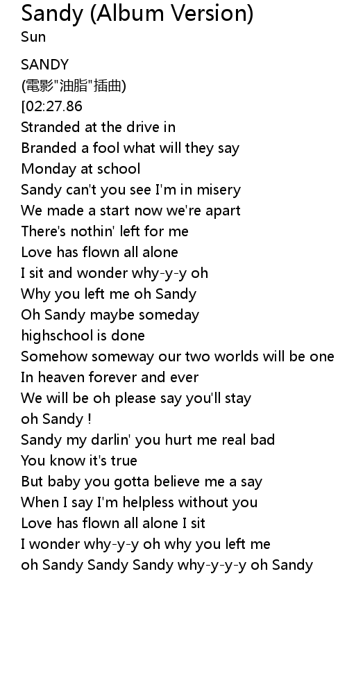 | [02:05.19] | oh Sandy Sandy Sandy why-y-y-y oh Sandy |