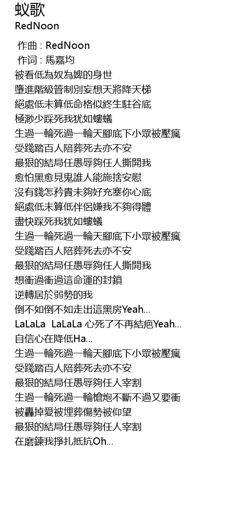 | Song | 蚁歌 |