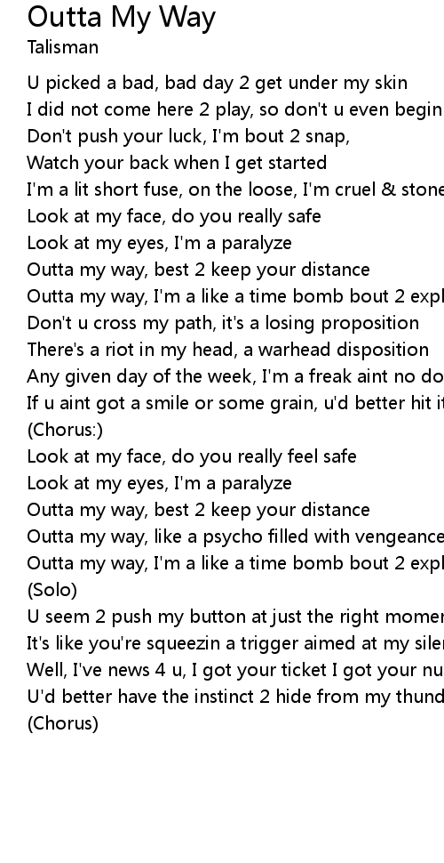 Outta my way, like a psycho filled with vengeance |