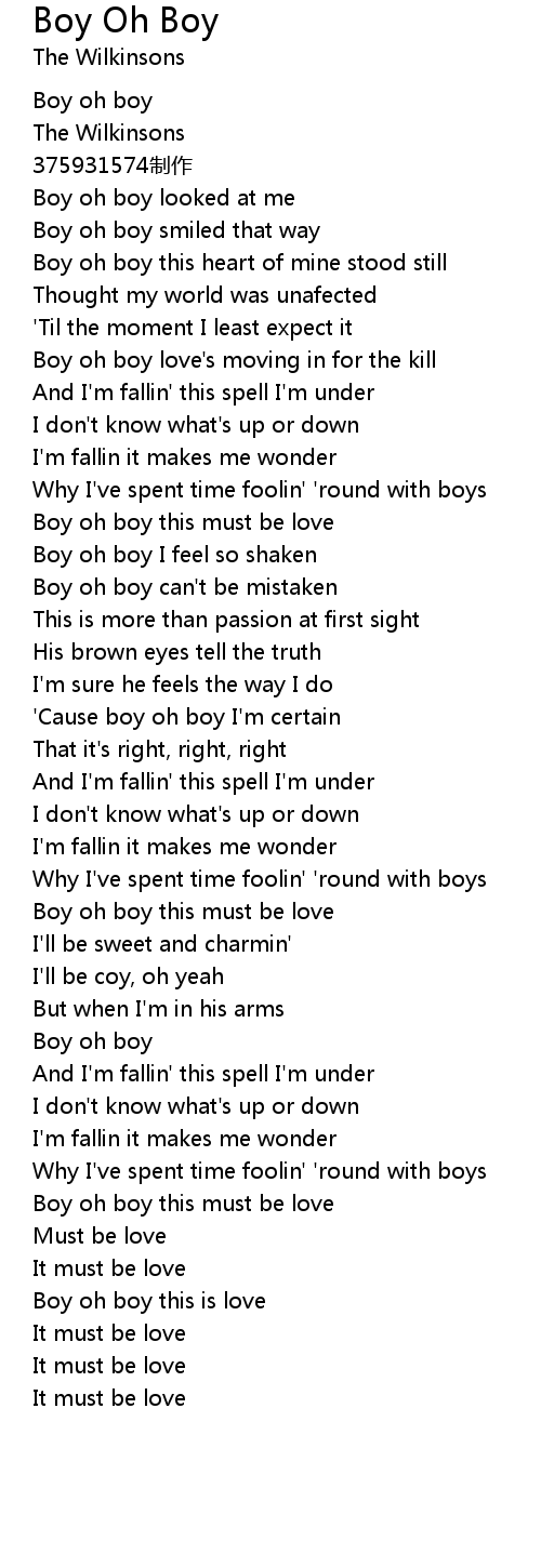 | [01:04.07] | Boy oh boy can' t be mistaken |