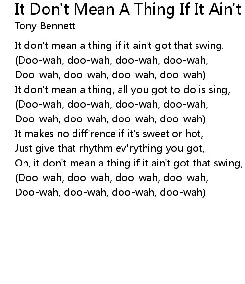 | Oh, it don't mean a thing if it ain't got that swing, | |
