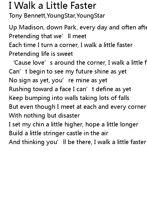 | ‘Cause love’s around the corner, I walk a little faster | |