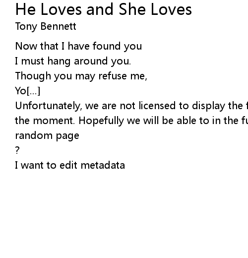 | Unfortunately, we are not licensed to display the full lyrics for this song at the moment. Hopefully we will be able to in the future. Until then, how about a | |