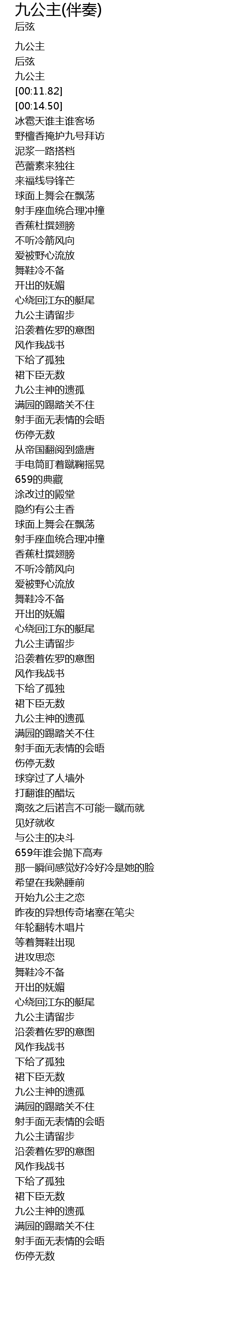 | [02:07.09] | jiǔ gōng zhǔ qǐng liú bù |
