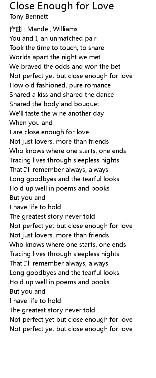 | I are close enough for love | |