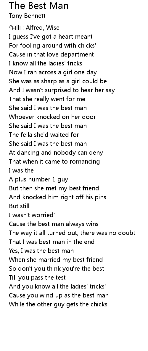 | Cause you wind up as the best man | |