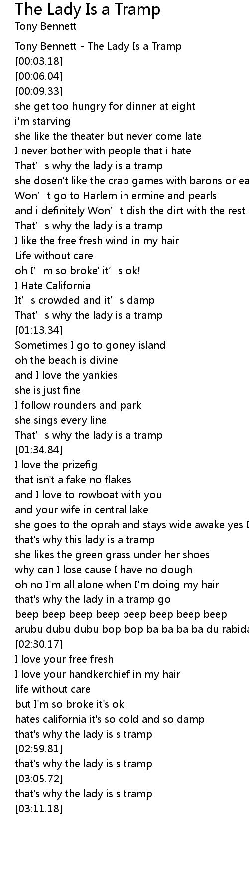 | [00:00.71] | Tony Bennett The Lady Is a Tramp |