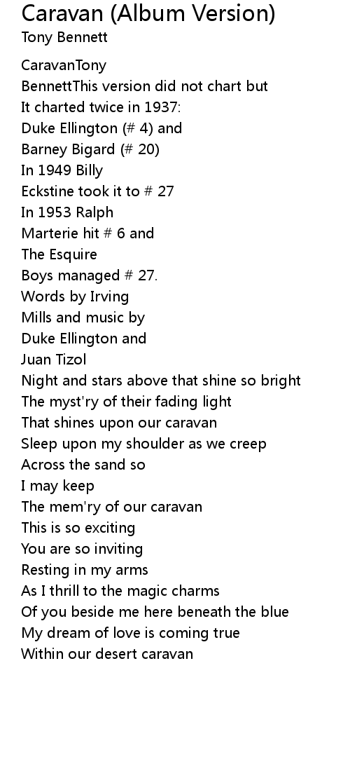 The mem'ry of our caravan |