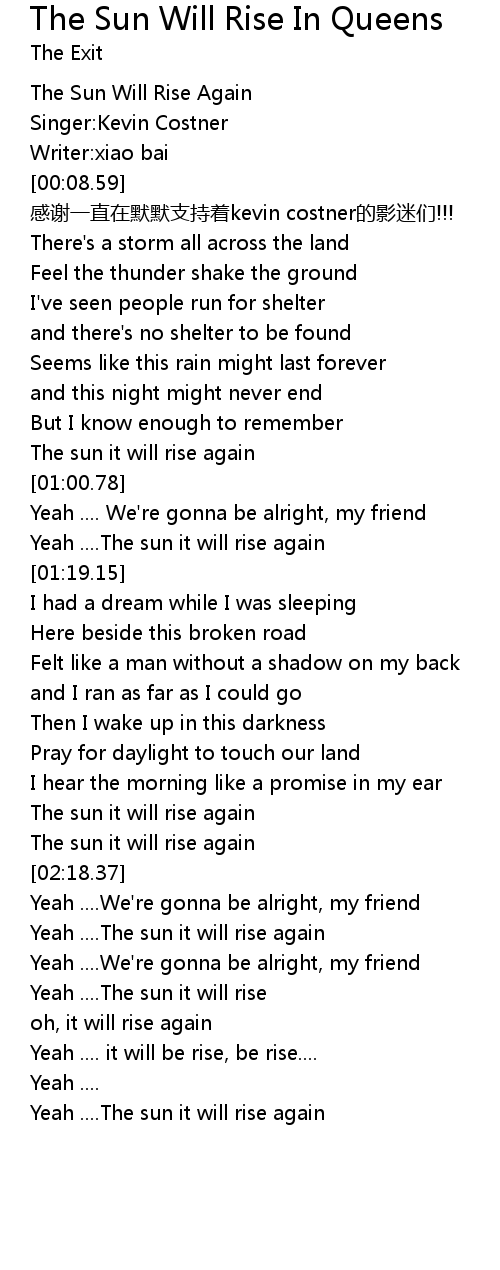 | [02:30.02] | Yeah ....The sun it will rise again |