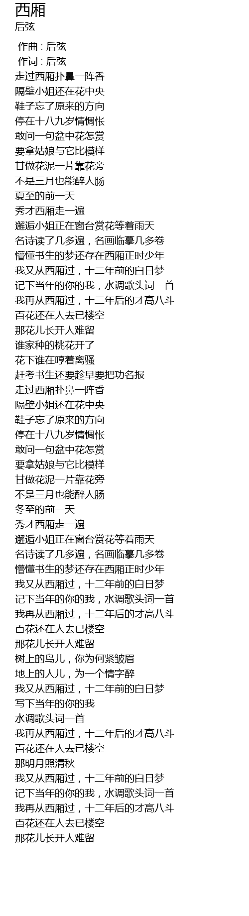 | [03:05.38] | 我又从西厢过,十二年前的白日梦 |