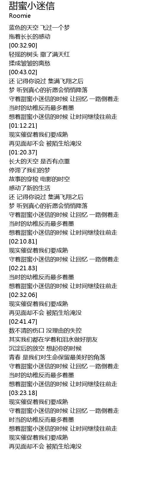 | [03:16.12] | 想着甜蜜小迷信的时候 让时间继续往前走 |