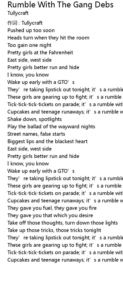 | Ticktickticktickets on parade it' s a rumble with The Gang Debs | |