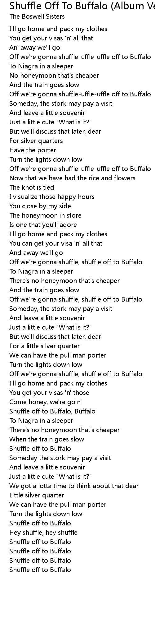 Off we're gonna shuffle, shuffle off to Buffalo