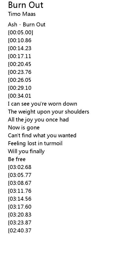 | [03:35.81][03:11.76][02:23.07][01:59.03][01:10.16] | Or burn alive |