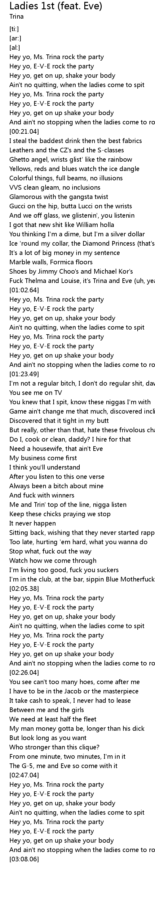 Hey yo, Ms. Trina rock the party |
